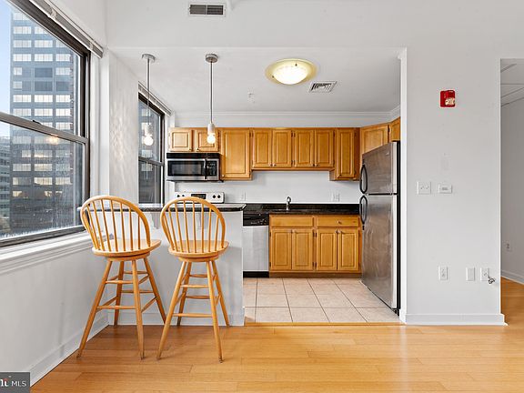 Everything you need right in the heart of Center City, just steps from Rittenhouse Square. This 1 bedroom, 1 bathroom penthouse condo in an elevator building may be 503 square feet, but it packs a punch! Enter into the spacious living room and immediately you are welcomed by bright, natural light with city views from the two large windows. This corner, top floor unit receives some of the best light in the building! The kitchen which features stainless steel appliances, granite countertops, and plenty of counter space for the at-home chef, is perfectly tucked away in the corner, but you can still easily chat with guests over the breakfast bar. If cooking isn't your thing, you're just steps from all of the amazing restaurants that Center City has to offer. Down the hallway, the bedroom easily accommodates a queen sized bed plus any additional furniture you may have. Beautiful hardwood floors throughout complement the unit. Two large closets, one in the bedroom and one in the hallway, alleviate any storage concerns. Brand new HVAC was installed in 2019 and laundry is available in the building. Chestnutview Condominium, a pet-friendly building, features one of the lowest monthly condo fees in the area and includes building maintenance and insurance, water/sewer, hot water, snow removal, trash removal and the management fee. The ideal location is a stone's throw away from Center City's best restaurants, shops and more plus it's within close proximity to UPenn, Drexel, University of the Sciences, and University of The Arts. Tons of options available for monthly parking nearby.