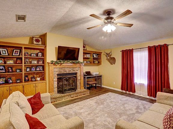 Very Charming 3 bedroom, 2 Bath home on large fenced in lot, right under a 1/2 acre. This has a split floor plan, large living room featuring vaulted ceiling with flat top, large master bedroom, and very spacious additional bedrooms. The home has new flooring throughout the main living space and into the master bedroom. The 2 additional rooms have new carpet. The exterior has just been repainted for a fresh new look. The home has a large fenced in backyard, with a large workshop/storage shed in the back right corner, along with a patio space to enjoy throughout the summer, plenty of room for a pool, or playlet for the kids. The home is on a dead end road, in a very quiet neighborhood.Seller is leaving some furniture. Living Room furniture, and master bed.