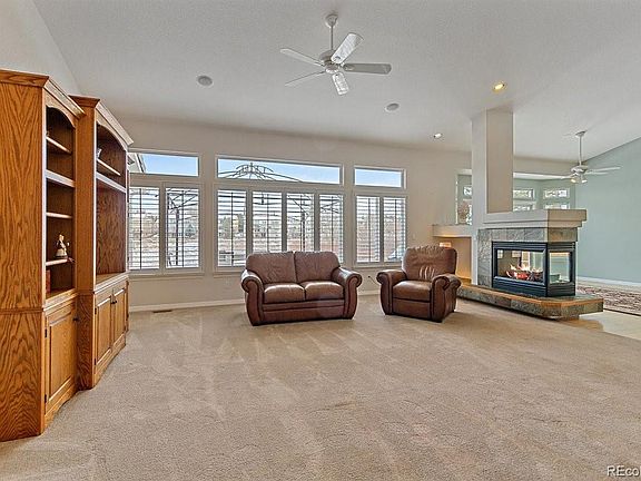 A RANCH HOME IN HIGHLANDS RANCH !!!!! Well maintained 4000 sqft of finished Oakwood built ranch, backing up to open space! Kitchen nook family room open area with wrap around fireplace. Huge master bedroom suite. Plantation Shutters. Storage space galore! Security system w/Ring Camera. Back yard patio, with 8 speaker sound system outside and in house. 6 valve timer operated sprinkler system with planter drip system. Steam humidifier for year round comfort and cement roof. Cabana on patio stays with home.