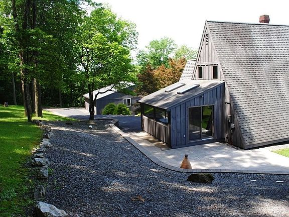 A FRAME CABIN TUCKED INTO WOOD Lovely views and beautiful landscaping make this a getaway home. Living space on every level and detached garage with incredible (heated) large workshop above. Storage everywhere. Walking distance to State owned land. Phone Karen to see at 570/898-6295. MLS 20-55660 $239,000