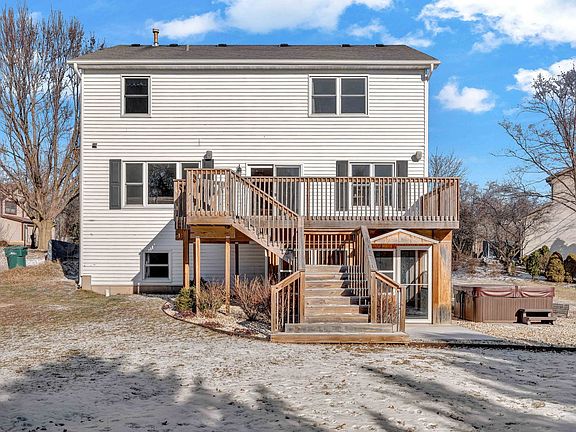 Wonderfully loved home on an idyllic cul-de-sac half-acre lot close to schools, library, fire station, grocery, and entertainment. This home can easily be transformed into an extended family home. For ease of traveling, or out of state visitors, it offers a parking area for a camper trailer/RV with 30 amp hookup. The welcoming front porch awaits your seasonal decoration and beckons you to enter. The breathtaking Kitchen has 42" Maple Cabinets, Granite Countertops, a large functional Island, a Farm-style Sink, SS Appliances, and a comforting coffee station. You will never want to leave this sun-filled space except to head out to the expansive deck overlooking the ample yard offering a fire pit, hot tub space, garden planters, and shed. The hidden gem of this home is the lower-level walk-out space, which provides flexibility to meet your needs. There are two separate defined rooms, a full bathroom, a family room area, a kitchen-type space, and easy access to the three-season patio for enjoying bug-free fresh air. There is ample space inside and out for everyone and everything you need in your next home.