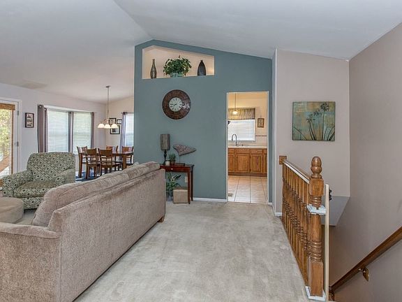 Stunning ranch home, situated on a large beautifully landscaped lot in sought-after of Fox Pointe Subdivision! This home boasts a bright and open floorplan with 3 Bedrooms, 2 Baths and over 2,277 square feet of living space including the finished Lower Level. Inviting Entry Foyer opens to the vaulted Great Room featuring a woodburning fireplace with raised hearth, spindled staircase, plant shelves and a door leading to the oversized patio. The adjoining Dining Room, with large bay window with great views of the level backyard, opens to the updated Kitchen featuring breakfast bar, an abundance of countertop space, stainless steel appliances including refrigerator, stylish brushed nickel track lighting and pantry. Bright and airy main floor Master Suite offers a walk-in closet and luxurious full Master Bath with double vanity, large soaking tub with bay window and separate shower. 2 additional Bedrooms, and an updated full Bath complete the main level. The finished Lower Level includes a spacious Family Room with gas fireplace, large Rec Room featuring a custom bar with architectural columns and accent lighting, Den/Workout area and still plenty of storage space. Other features include: new roof (8/2015) and 2 car attached garage. Relax outside on the patio, and enjoy the large private fenced-in backyard. Location could not be better ~ convenient to shopping, restaurants, and Pomme Creek Golf Course. Easy access to highways 55, 270 and 141.
