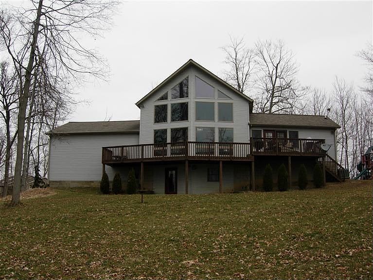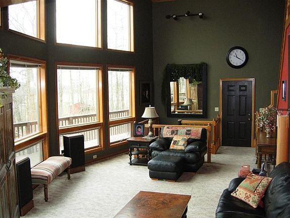 Beautiful Wooded 3 Acre Private Setting... Spectacular quiet spacious custom built home nestled in wooded area. Awesome floor plan w/ balcony overlooking huge great room. Gorgeous knotty pine wood cathedral ceilings through out the whole home. Featuring magnificent windows with an outstanding view of the countryside. Lovely oak kitchen w/dining area. Master suite on the upper level w/ private bath & walkin closet. Full finished walkout basement. Rec & family area plus large storage area. Make plans to see now...