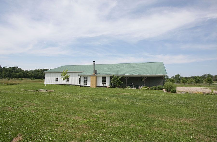 Unique country property that is perfect for those who love muscle / classic cars, motorcycles or just enjoy having their own workshop, with over 5,000 square feet, 50 x 100 pole constructed home / shop and it features a tremendous amount of garage / workshop space and the finished living space is huge and includes a great room floor design with an enormous living room, really big eat-in oak cabinetry filled kitchen, a king sized master bedroom with walk-in closet, main level family room plus office space, 2nd floor loft offers bonus area, 1st floor laundry, covered patio, forced air propane furnace with central air plus an outdoor wood furnace, generator, situated on 3.375 acres, this property is ideal for a self supportive lifestyle. $200,000.