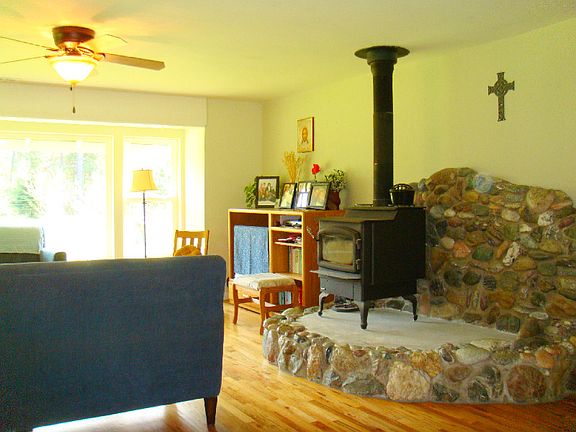 Family Loved Mini Farm! This is a quaint & peaceful 5 acre parcel w/ an abundance of raised gardens & fenced pastures. The spacious & bright 3bd/2bth, 2048 sq.ft. home has been extensively remodeled inside & out. Large living area w/ a river rock hearth & an abundance of windows opens to dining area w/ glass doors & large kitchen. All 3 bedrooms are large w/ good closet space & natural light. Extra large attached garage has enough room for multiple vehicles, storage & shop area. Covered patio off dining space makes perfect outdoor lounging. Fenced & x-fenced pasture areas are perfect for animals or expanded gardens w/ creek irrigation rights for 2 acres. The accessible creek frontage could be easily developed for easy summer enjoyment. Outbuildings include a quaint 600 sq.ft. barn w/ cement floor & loft, good size equipment shed & a solid 12x24 woodshed w/ a large concrete root cellar. With a 40 gpm well & lots of sun this is a perfect set-up.