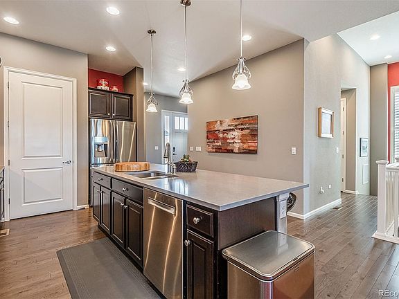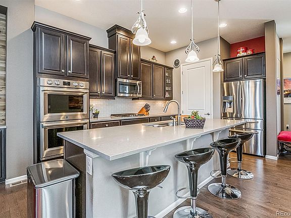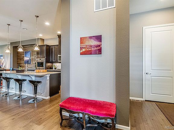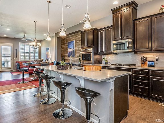 Luxury ranch paired patio home in gated Green Gables Enclave features 3 bedrooms, 3 bathrooms, 3071 finished sq/ft, and has over $97k worth of homeowner upgrades! Enjoy the open floor plan with hardwood floors, gas fireplace, plantation shutters, surround sound, and wood accent wall. Chef's kitchen is upgraded with gourmet stainless steel appliances including double convection ovens, gas cooktop, and French door refrigerator, quartz countertops, stain nickel hardware, Moen faucet, under cabinet lighting, soft close drawers, maple cabinets, and tiled backsplash. Enjoy the master bedroom suite with built-in shelving, wood accent wall, sliding glass door with deck access, large walk-in closet, double vanity, and glass shower enclosure. The finished basement is stunning with terracotta tile flooring and a custom wet bar area that includes stainless steel appliances, granite countertop, soft-close cabinets, and porcelain tile floors. Additional features include a deck with mountain views and sunshade, 2-car attached garage with custom loft, laundry room with cabinets and utility sink, and it is ADA accessible. HOA includes clubhouse, outdoor pool, fitness facility, water, sewer, trash, snow removal, and exterior maintenance including the roof. The backyard cannot be fenced in since this is a paired patio home. You're only minutes away from the mountains, downtown, 6th Ave, and Hwy 285. View both the property virtual tour link and a full 360-degree Matterport walk-through link to get a feel of the home's layout.