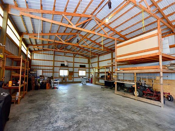 Welcome to this wonderful acreage property located off paved road with over 14 acres. The garage is over 2000 sq ft, with 13 ft overhead door, 80 gal air compressor, and built-in shelving. Home also features two geothermal units for renewable energy efficiency. The main yard is nearly 4 acres and has an invisible fence for pets. Several out-buildings for chicken coops, firewood storage, dog kennel, etc. Beyond the main yard, is a large fenced-in area perfect for hobby farm livestock. The five acres at rear of property are timber with a creek passing through. Many updates have been done to the home including newer deck, roof, windows, doors, and HVAC. But the house does still need some TLC in many areas, including upstairs bathroom, painting, trim, some flooring, and other updates to build equity and make it your own.