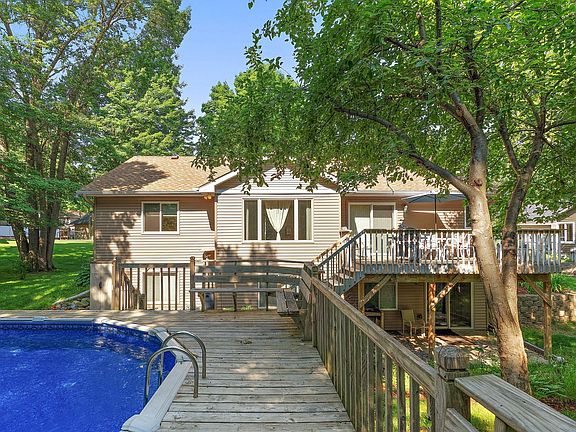 A well maintained one-level rambler includes an attached three-car insulated/heated garage expanding almost 900 sq ft! This cul-de-sac beauty is in a highly desirable neighborhood with many Elk River amenities close by. The main level includes the owner's suite with a walk-in closet, additional bedroom/den, full bath in hall between bedrooms, mudroom with washer/dryer/sink/cabinets and closet, a large LR enough for a formal DR table, and a kitchen that features a center island with plenty of cabinets! All stainless-steel appliances and natural wood flooring throughout. The lower level includes two bedrooms, a bathroom, family-room and extended storage. Enjoy the backyard from the 10x20 deck, lower walkout patio or lower-level paver patio. Expand your summer entertainment from the above-ground heated pool and surround decking. Pool has new liner and winter cover along with maintenance supplies. Significant improvements in the past five years include: new windows, roofing, vinyl siding, leaf guards, fresh paint, carpet, deck stain/paint, electrical panel and insulated garage attic. Welcome home!