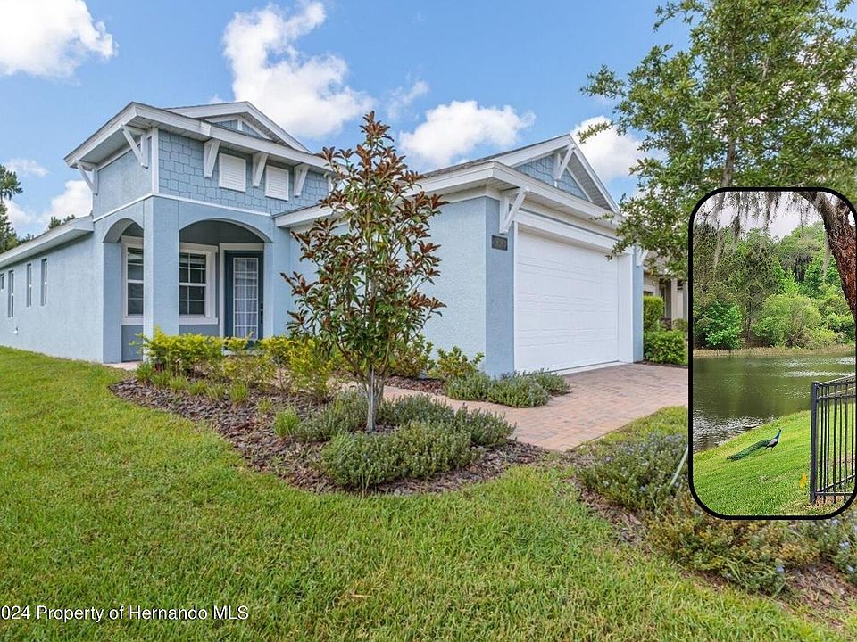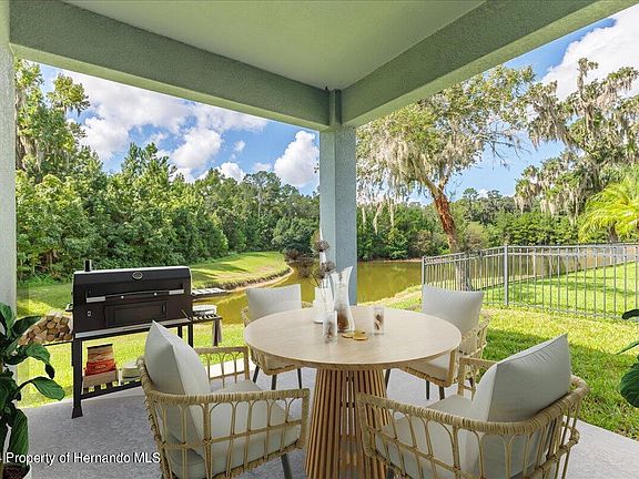 Under Contract Accepting Back Up Offers - LOOKING FOR A NEW 55+ HOME IN THE BEAUTIFUL COMMUNITY OF THE CASCADES OF SOUTHERN HILLS PLANTATION BUT DO NOT WANT TO WAIT? This is the One! Just Beautiful AND on a Premium Lot with a POND which offers Nature in your Backyard. Deer, Peacocks, Turkeys, Sand Hill Cranes.. This Home was Built at the end of 2023. 3 Bedrooms Plus Flex Room, 2 Bathrooms & 2 Car Garage. Luxury Features starting at the Wide Entry Foyer with 8 ft Doors & into the Great Room Vaulted Ceiling Floor Plan with Plank Tiled Floors. The Well Appointed Kitchen is at the Focal Point and is impressive with Stainless Steel Appliances (Refrigerator, Built in Microwave, Gas Stove with Chimney Hood & Dishwasher) , 42 Inch Soft Close Cabinets, Quartz Counters, Tiled Backsplash, Island that offers additional Counter Space and Seating, Butler's Pantry & a Walk in Pantry. The Owners suite is Cozy with Large Windows and offers One Huge Walk-in closet, Ensuite Bathroom with Tall Cabinet with Dual Sinks & Walk in Shower. At the front of the home you will find a Flex Room that can be used as an Office or Den. The full Guest Bath, both Guest Bedrooms, Laundry Room with Washer and Dryer, and Large Storage Closet are Tucked away from the Open Concept. Rooms have been virtually staged to give the new owners an idea of how it can look. Live in the Cascades and enjoy quiet morning walks & relaxing evenings in a Serene Setting. Surrounded by Florida's Natural Landscaping giving residents a true sense of nature, to relax away from the hustle and bustle of city life, while being only 45 minutes away from a quick commute to Tampa. The low HOA includes Cable, Internet, Irrigation and Landscaping Maintenance for worry free living. There is also an optional membership available to resident looking to join the award winning Golf Club. A 55+ neighborhood that offers an Array of Amenities to enjoy including a Large Community Pool, Pickle Ball Courts, Bocce / Horseshoe Courts, Fitness Room, Fire Pits, Walking Paths, and a Multi-Room Clubhouse to enjoy with Family & Friends. 2-10 Warranty is transferrable to new Buyer. Come See!