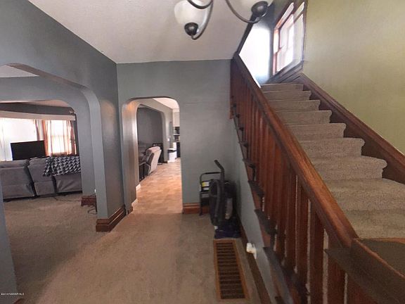 Good solid home with large yard and an over-sized garage. Enclosed front porch will give you expanded living space three seasons of the year. Enjoy entertaining with the open floor plan on the main floor. Upstairs are two bedrooms and a good-sized bath with claw foot tub. Finish insulating the garage and add heat for your own man-cave.