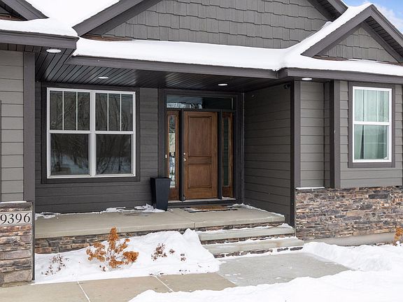 Skip building and move right in! This beautiful custom built rambler has it ALL! Pulling up you get the Executive Style feel with the LP Smart Board Siding, Covered concrete Porch, Beautiful Stone, Soffit Lights, and three peeks with Shakes and an enormous Concrete Driveway that wraps around the 3rd Stall for extra parking. The 1900+ Sqft Main Floor boasts a large open concept floor plan with 9 ft ceilings throughout and a grand master bedroom with a huge walk-in closet and a private master bathroom! The kitchen offers stained cabinets with granite counters, backsplash that pulls all the colors together, Stainless Steel Appliances, Walk-In Pantry and a lrge island that overlooks the dining room and the livingroom with a stoned fireplace and built-ins. The front two bedrooms are generously sized with their own Full Bath across the hall. The unfinished walk out basement gives you quick and easy Equity building option! This one will not last, schedule your showing today!