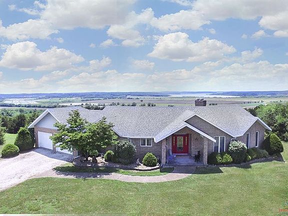 Awesome View! Beautiful 4 bedroom, maintenance free home. Nice kitchen with custom cabinets and lots of storage. Large open floor plan with fireplace. Full finished basement with family room, fireplace and wet bar. 2-car attached garage large enough for a boat. Nice acreage. This is a MUST SEE!!