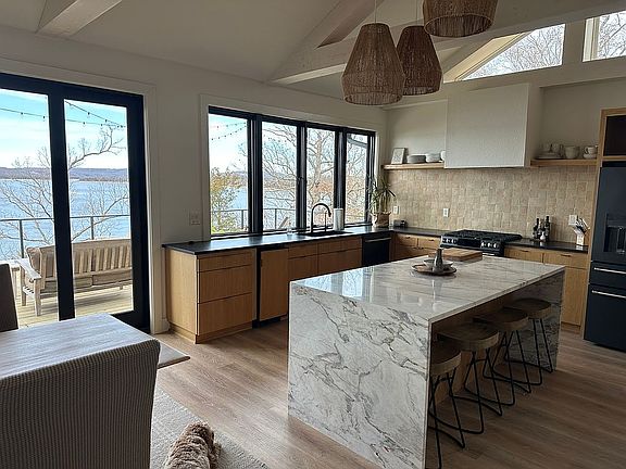 Great Location and Beautiful View - Beaver Lake Easy 20-minute drive from downtown Rogers and the VIEW - 180-degree panoramic with amazing sunsets - the best on Beaver Lake!!! The home has been completely renovated including new exterior paint, new expanded deck with stainless steel railing, interior paint and fully updated/remodeled upstairs. New windows, new floors, new oversized sliding doors, all new appliances (GE Cafe), white oak custom cabinets, and handmade Zellige tile. You have to see it to appreciate all the upgrades. The home sits on just over an acre lot with plenty of trees. It has 2,800+/- sq ft. with a two-car garage and plenty of storage. It features 2 bedrooms and 2 full baths upstairs and 2 bedrooms and a full bath downstairs. This property features a new private dock. Easy walk to the lake and the dock as concrete decking, two (12x30) slips, oversized walkways and massive swim deck. The dock has solar power, two lockers, two jet ski lifts and a powered boat lift that easily handled 25 ft cobalt surf. This home is FSBO and we kindly ask that only pre-approved, serious inquiries schedule an in-home tour. Please call 479-871-4229 or e mail johnnyhughes2023@gmail.com