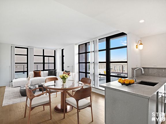 Welcome to The Hyland, a modern boutique rental exhibiting superior workmanship, nestled in the relaxed neighborhood of Greenwood Heights. *Pic From 5B Witch very similar unit* Unit 5A is an impressive corner three-bedroom with 2 bathrooms penthouse residence with a Large of private terraces. The Hyland presents a collection of modern one-, two- and three-bedroom rental homes, with some residences offering private outdoor space. Cutting edge interiors by Brooklyn based CL-OTH result in residences that have a point of view and focus on the details. Fumed oak flooring pairs with multi-tilt mullion-free windows to create spaces that bring the outside in and provide a feeling of openness throughout. Grey wood kitchen cabinetry, accented with brass pulls, is complemented with honed grey Ceaserstone counters and backsplash, punctuated by top-of-the-line stainless steel Bosch appliances. The bathrooms are finished with Kohler fixtures and sinks, and create a continuity of aesthetic in their use of Ceaserstone vanity countertops in a polished finish. Select units feature en-suite bathrooms, custom walk-in closets and home offices. Modern, but genuinely Brooklyn, The Hyland embodies superior workmanship married with a relaxed neighborhood vibe. Set in a 5-story brick building, these unique rentals are accompanied by an amenity suite that rivals condominium living, including virtual doorman service, bicycle storage, parking, a fitness studio, and ample common spaces to relax, party or work. Located in Greenwood Heights, on the doorstep of burgeoning 4th Avenue, The Hyland affords easy access to Park Slope, Prospect Park and Industry City. From its contextual architecture to its down to earth attitude, it epitomizes the authentic Brooklyn everyone falls in love with. Come home to The Hyland. parking avail for extra $ to schedule private tour please email me for quick respond