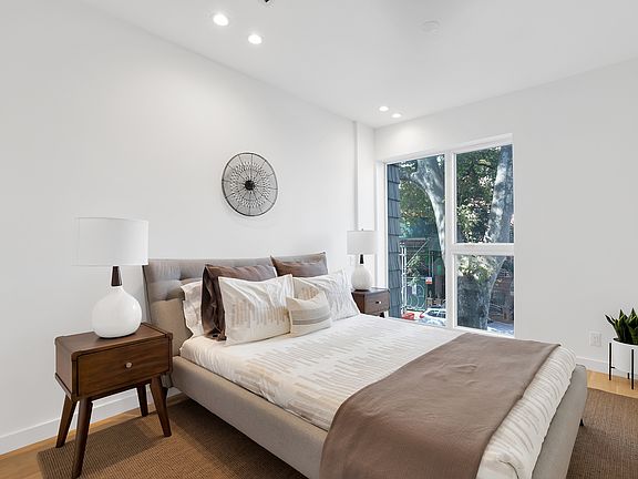 Introducing 194 Ainslie Villa, Williamsburg's newest boutique condominium featuring seven modern homes, including six one-bedroom, one-bathroom units and a three-bedroom, one-and-a-half-bathroom garden duplex. Each luxurious residence maximizes outdoor views, natural light and serenity with double-pane, floor-to-ceiling Pella windows. Six-inch wide-plank oak floors that run underfoot while tall ceilings feature twin beam recessed lighting. Relax in sun-filled living rooms, and enjoy contemporary open kitchens finished with two-tone wood cabinetry, quartz countertops and beautifully integrated Bosch stainless steel appliances. Spacious bedrooms include large custom closets, and spa bathrooms boast gorgeous large-format tile and frameless glass walk-in showers. Extra closet space, in-unit washer-dryers, integrated sound systems and central HVAC add extraordinary comfort and convenience. The expansive garden duplex opens to a lovely private yard. Selected one-bedroom apartments feature wide balconies overlooking the lush greenery. Residents of this beautiful new-construction building enjoy smartphone-controlled voice intercom access and a stunning common roof deck with panoramic city views. Located on a charming, tree-lined Williamsburg block, this home is close to the great dining and nightlife the area is known for. Beloved McCarren Park is less than a half-mile away, offering a pool, playgrounds, sports courts and running track. The Lorimer and Graham L stations and Metropolitan G stop are all just two blocks away, putting the rest of the city within easy reach. Residence No. 2B is a thoughtfully designed 1 bedroom 1 bathroom home that blends a modern open layout with a collection of tasteful finishes. Upon entry, the home flows into a sunny and spacious, open-concept living room, comfortable dining area, and kitchen with airy 8'9' high ceilings and southern exposure for great volume and natural light. The kitchen, being the centerpiece of the home, comes complete with custom two-toned oak cabinets, quartz countertops and equipped with stainless steel appliances by Bosch. Tastefully completed with wide-plank white oak flooring, recessed lighting, high end Pella windows, custom built-in closets, and what every home buyer wants right now, a sun drenched common roof deck with views of the gorgeous Manhattan skyline for residents to enjoy. Just outside your door, enjoy all the restaurants, cafes, shops and nightlife that make this neighborhood so special. The complete offering terms are available in an offering plan available from the sponsor. File No. CD180162