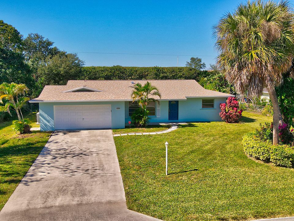 This 4 Bedroom 3 bath home offering 2,200 square feet under air is centrally located in the well maintained neighborhood of Florida Gardens. There is an attached guest home with a full kitchen. What an opportunity, to own this home with no HOA! The home has a new roof, complete shutters, freshly painted exterior, new drain field, and plenty of room for a pool. The bedrooms are large, and the floorplan allows for entertaining as well as down time. The yard is fenced, and no rear neighbors. Schedule your visit to see this home.