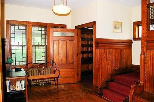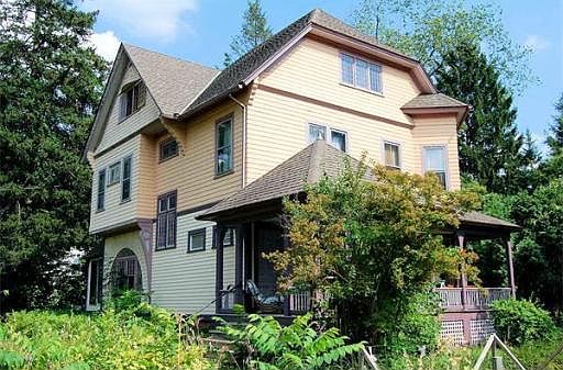 THE WELLINGTON HOUSE – Charm and dignity abound in this authentic 1888 Queen Anne style Victorian. Elaborate and wonderfully eccentric this highly sought-after Classic Victorian is rarely offered in the Pioneer Valley. Authentic with a hipped roof and lower cross gables the interior features a grand wood-paneled foyer and formal entry room, kitchen lit with huge clerestory window with adjoining pantry, formal dining room with sliding double doors leading to a refined front parlor with fireplace, six spacious bedrooms, four bathrooms with tile. Master bedroom suite with full bath and fireplace. Other features include high ceilings, maple flooring, walk-in closets, back stairway, expansive period porch, shingle and wood clapboard siding, rear courtyard garden, two-car garage. Natural gas hot water heat. Poet Robert Frost rented 1931. Located downtown Amherst walking distance to town library, theater/arts Center, Amherst College, University of Massachusetts, and famous Amherst town common