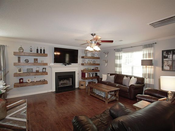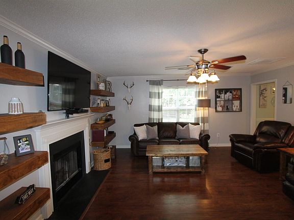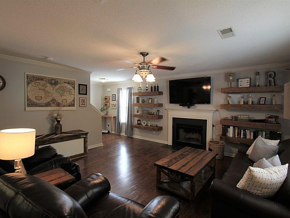 Charming 4 Bedroom, 2.5 Bath Home with a Farm style decor includes custom floating shelves. The Large Family Room with wood burning fireplace is open to the Kitchen. The Kitchen has white cabinets, bar and pantry. Master Bedroom has a walk in closet anda Master Bath with double vanities and a garden tub/shower combo. All 4 bedrooms have walk in closets. Out back you will find a spacious 10x15 covered rear porch, and a large fenced in backyard with a storage building. New roof being installed 6/12/20.