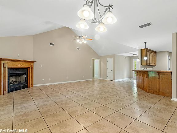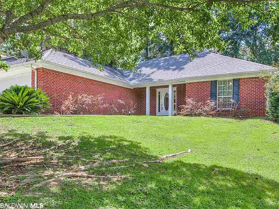 This property is located directly on the golf course next to the cart path for easy access or just really nice views. This all brick home is in good shape and offers some great features such as custom laid tile floors throughout and an open plan with split bedrooms for privacy. Each of the 3 bedrooms are oversized and all have walk in closets. The master bedroom has two separate walk in closets. Upon entering the home it opens into a large living room area with a wood burning fireplace. The kitchen has loads of cabinets and a bar that overlooks an eat in morning room area. The well appointed master bath has a large tub and walk in shower. Outside the front yard has some beautiful plants and trees, is well landscaped and the back yard is fenced. Along with the fantastic location and views of the golf course the neighborhood also offers its residents multiple pools, a yacht club across the highway on Mobile Bay, and access to the Lake Forest horse stables. This house is move in ready!