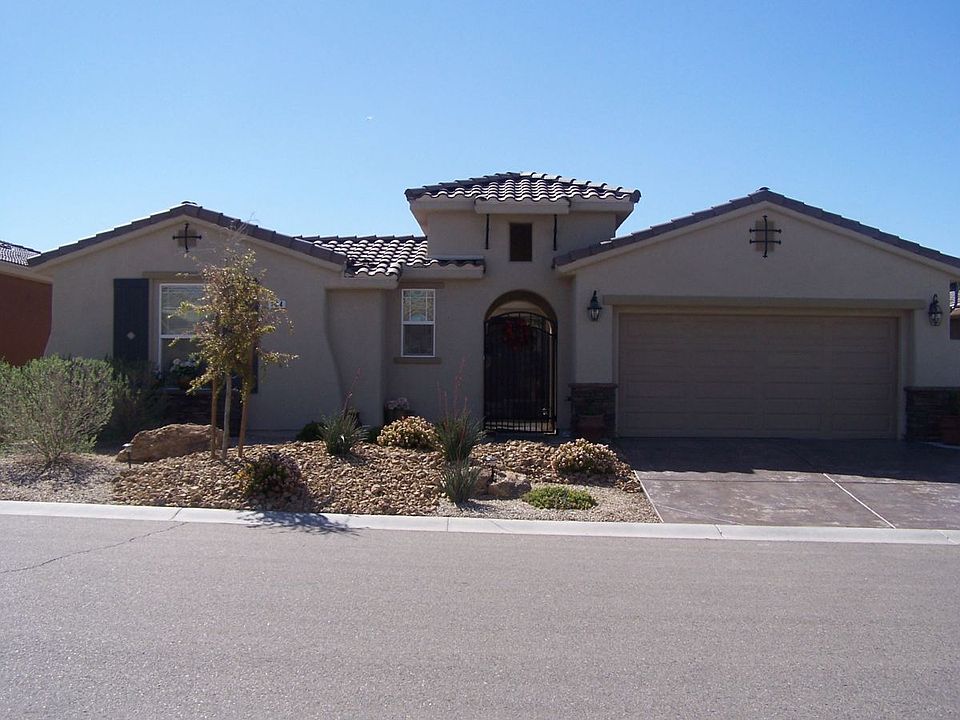 Please checkout this beautiful home as It starts with an iron gated large front courtyard. The interior has hardwood floors in living room and master bedroom with upgraded tile throughout the rest of the home. The spacious kitchen has upgraded cabinetry and granite (with a beautiful tiled back splash) and stainless steel appliances (including the refrigerator). The master bath has a granite counter top with separate sinks along with garden tub and a very nice shower. The guest bath and laundry rooms also have granite counter tops. This home has a tandem 3 car garage with cabinets and water softener. The covered rear patio extends along the rear of the home and offers a great view as well as having the fenced backyard surrounding very nice landscaping. The pool offers fun escape from a hot days.
