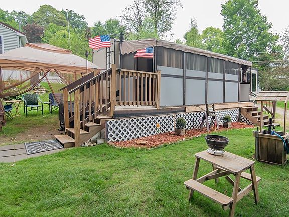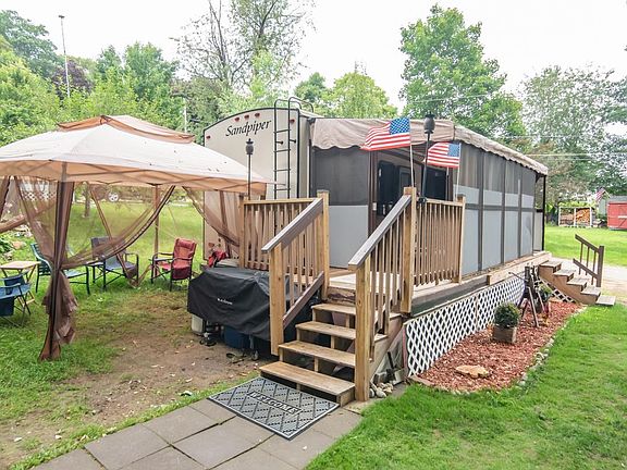Looking for a quiet get-away, then you need to come look at this 2017 Sandpiper and the land that it located on. It is beautiful inside and out. Perfect place to spend your free time and escape from everyday stress. The park is open year round with the exception of March and November (no overnights permitted in these months but you can still be at the park from 9-5). Your backyard is conservation land and so peaceful. It has direct access to a trail that you can use for walking, ATV, snowmobiles and snow shoeing. With only a $90 monthly fee and you own your own land. The shed on the property is all set up for an extra hangout spot for yourself and your guests. It has been insulated and drywalled. So just pack a bag and start enjoying your life.