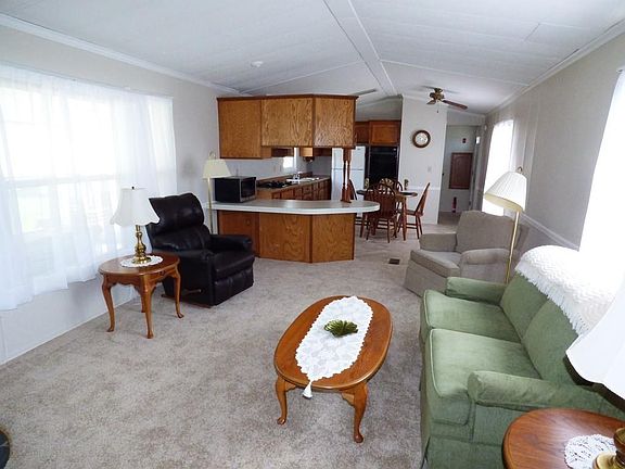 Pine Hill Estates 55+ community- newest offering...Step into your Open and Airy Living Rm, Dining Area & Kitchen with lots of natural light...Yes...you can still host the Holiday's if you wish..there's room for everyone. Full bath has a garden tub and double sinks.. Enjoy extended seasons in your 10X20 screened porch. Got a green thumb? You can keep it green with lots of space for your favorite plants and 2 sheds for storage! Updates include roof (2013) Washer (2017) Carpeting (2017) Hot water heater (2015) and yes...this home has propane heat. Convenient to shopping and highways. Schedules your appointment today!