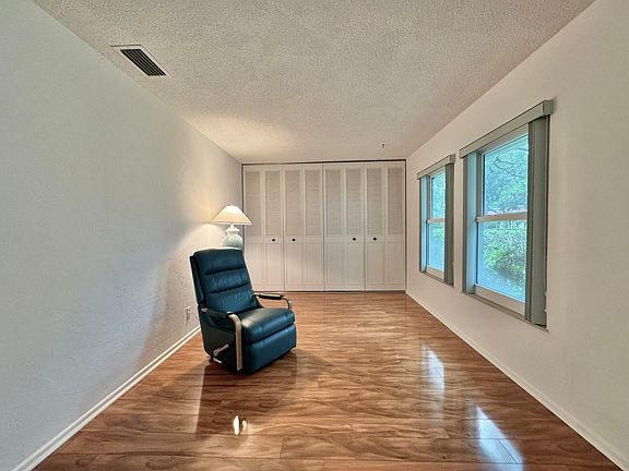 Make this 1/1.5 Condo w/ DEN yours w/ your own touches! The den w/closet could easily be converted to a second bedroom. Located in Covered Bridge, an active 55+ community. 2023 ROOF, IMPACT WINDOWS (except for sliders), 2023 RUUD A/C, Laminate flooring thru-out, eat-in kitchen, pass thru to dining rm. Glass slider enclosed lanai. Parking is steps away from the front door. Walking path in rear yard. Covered Bridge offers many activities & amenities that include: 2 heated pools, tennis courts, pickleball, clubhouse w/ library, billiards, bocce ball, shuffleboard, exercise room & walking paths. Mthly HOA includes: cable, internet, water, lawn & ext. maint.. PET FRIENDLY community (22 lbs. max). Conveniently located close to PBI Airport, shopping, turnpike & just a short drive to the beac