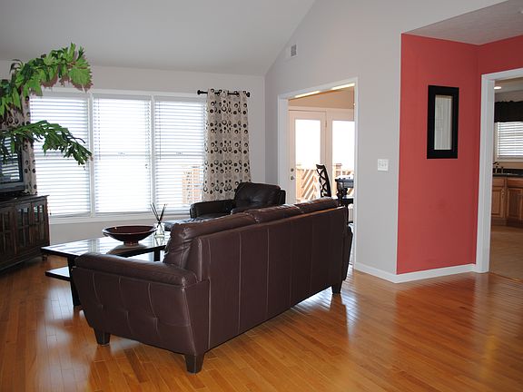 Beautiful and spacious all brick ranch home with cathedral ceilings in Great room, open kitchen, hardwood, stainless appliances, titles floor in kitchen, hardwoods in Gr, hall and dining area. Luxury master bath! Fenced near yard with open fields beyond for a peaceful setting. A Must see! Butcher Block island does not remain.