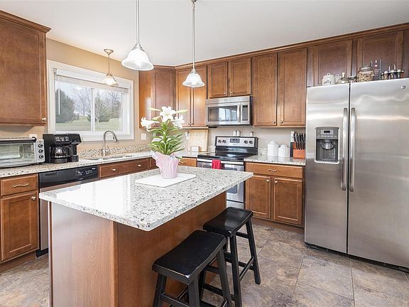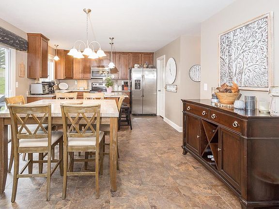This 9-year-old home by Northern Star Homes offers tremendous curb appeal with an expanded porch and brick front. This floor plan has an open concept and divided bedroom layout. Sitting on a spacious lot in Cedar Berry, the home features a 3-car garage, covered deck, walk-out basement, and brick/stone front. Inside, you'll appreciate the hard surface flooring, an open staircase with spindles, a woodburning fireplace, and vaulted ceilings. The kitchen has granite countertops and upgraded cabinets. This home is designed for easy living with entry from the garage to hall bath and laundry.