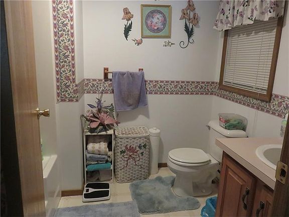 This 3BR, 2.5 bath modular home is located on 2+ acres. All doors are new. A partially finished full basement has a mini kitchen and pellet stove which supplements the electric baseboard heat.