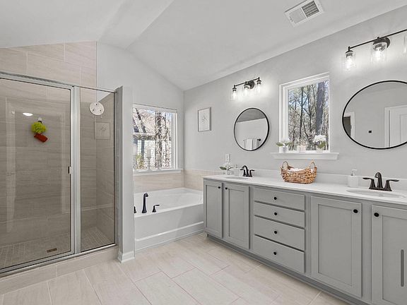 Downstairs has a guest room with full bathroom. The upstairs (5th bedroom) is an oversized bonus room, updated laundry room with shelving, master retreat with en-suite bathroom, garden tub and walk in closet and at the end of the hallway are 2 other bedrooms and full bathroom.