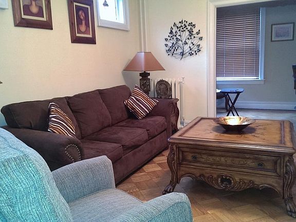Rare find. 1+bdr Model Unit comes fully furnished as pictured, move-in ready, ideal for efficient relocation, parking available, No Broker Fee. To schedule viewing Include income, credit standing, employment, and desired move-in date. About location: Gated private residence located in the sort after Western Slope area of Jersey City Heights. 3-minute walk to local & NYC transit, 7 min express jitney to Journal Square Path Station, 25 mins bus/jitney to midtown, mins to Hoboken. Close to all major roadways. More Details: New full bath. Updated eat-in kitchen, granite countertop, round marble table w/seating, kitchen comes fully stocked with Mikasa dinnerware, cookware, coffee maker and more, equipped with 6-burner professional gas range. Walk-in pantry offers plenty of storage. Bedroom furnished for maximum comfort, ample storage and includes a/c, ceiling fan, flat screen TV, + guest has a large walk-in closet. Huge living room boasts comfortable furnishings w/lovely accent tables, lighting, and large flat screen TV. Adjacent room adds additional seating with a gorgeous bar and matching stools. Spacious formal dining room highlights Ashley Dining set w/hutch, buffet, large dining table & seating, perfect for entertaining. Home office area includes antique writing desk and chair. Concierge Laundry Service available for "wash & fold" (fee) includes free p/u & delivery. Qualification required: non-smoking, verifiable employment, appropriate (40X) rent to income, good-excellent credit, references, background check, good rental history or Qualified guarantor. Non-Smoking residence. Tenant pays additional monthly fee for heat, gas, electric, wifi & Fios TV. Owner pays trash, water, and hot water. Owner-Occupied residence, some restrictions may apply.