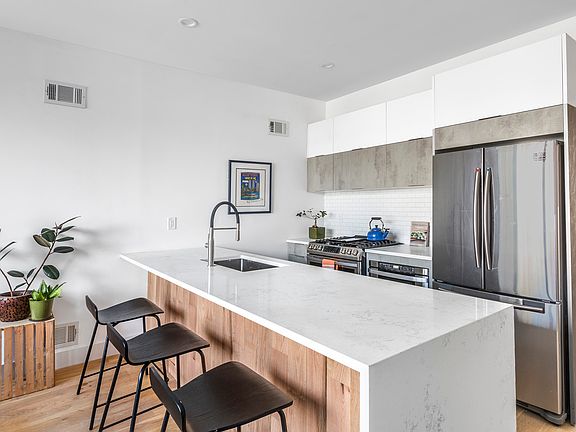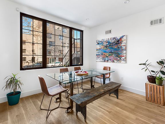 149 Cooper Street is a two family 3-story townhouse in Bushwick. This elegant two family townhouse comes with parking. This home can be configured as a top floor apartment over an owners' duplex with private backyard or an owner's penthouse 2 bedroom with roof deck over a rental duplex that covers your expenses. This home is everything you've ever wanted, it's filled with light, has hardwood oak flooring throughout and high end finishes. The 2BR, 1.5 Bath owner's duplex incorporates an open kitchen on the parlor level for dining, living and hosting. The expansive kitchen is truly the heart of the home, with a wonderful island and room for cooking, working, and eating. The stainless steel appliances meet the home chef's every need, with a 5-burner range, high end refrigerator, dishwasher and a microwave drawer. Both bedrooms have direct access to a deck that overlooks the spacious private backyard. The outdoor space is a quiet sanctuary from the city's hustle and bustle. The flexible lower level of the duplex can allow for a living/recreation room plus half bath with W/D or a living space, a half bath with W/D and an additional 3rd bedroom with its own direct access to the backyard. The top floor is a 2BR 1Bath luxe unit. The design is extremely unique, the unit has super high 13 ft ceilings, original exposed wooden beams, 3 skylights that provide a feel of luxury, style and comfort. The bath blends chic and functional with stylish tiles, an oversized double sink vanity and a built niche in the bathtub. This top unit has great potential. By adding an elegant spiral stair it could easily be transformed into a penthouse unit with direct rooftop access with beautiful city views and outdoor private space. This townhouse showcases energy efficient LED lighting throughout, central heating/air, and washer/dryer hookups for both units. The location could not be more ideal: you are in the quiet side of 'happening' Bushwick just a few blocks from Irving park. You'll also be minutes to everything, including new cafes and shopping. In addition, transportation is located just a few blocks away and the L & J trains make for an easy commute into Manhattan.