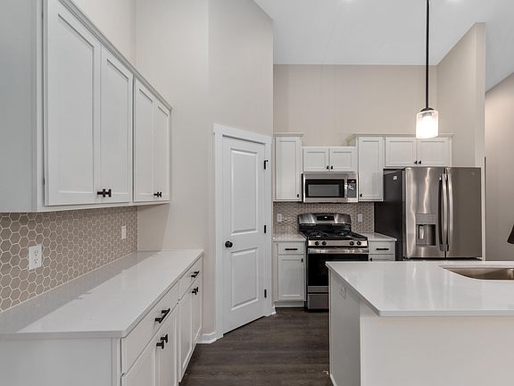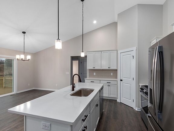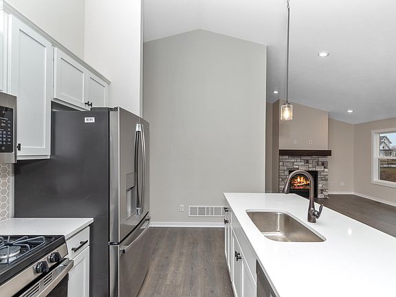 This beautiful new construction home is located in the Rockford Highlands neighborhood has 4 bedrooms, 3 bathrooms, and 2,343 sq. ft. of living space! Enter from the charming front porch into the foyer, which leads you into the open concept living, kitchen, and dining area.Vaulted ceilings and large windows give the home an open and airy feel. The gorgeous kitchen has new appliances, a tile backsplash, and a center island with room for seating. In the living room, you'll find a stone-faced gas fireplace, great for cozy winter nights. Sliding doors in the dining room lead to a large wooden deck perfect for enjoying the warmer months! The spacious main-floor primary bedroom features a full bathroom and walk-in closet. Down the hall from the