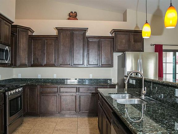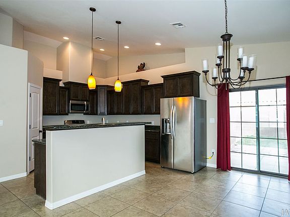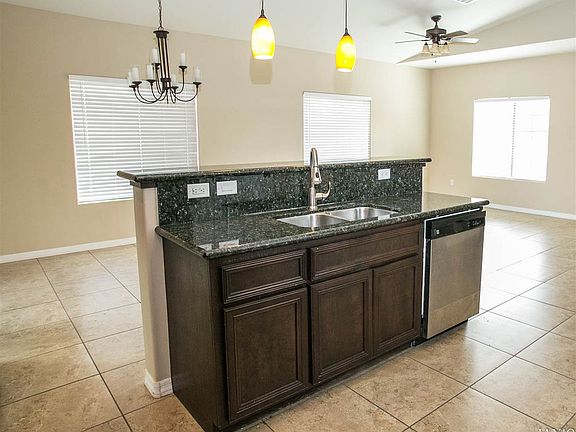 4 BR 2 BA home with 3 car garage in Valle Del Sol built in 2013. So well taken care of that it almost looks new!! This home features an open floor plan, beautiful dark cabinetry with granite counter tops, vaulted ceilings, recess lighting, stainless steel appliances and ceiling fans in all the bedrooms. Both the master and hallway baths have double sinks. Front of house is beautifully decorated with stone veneer and landscaping. Property is completely fenced with block and gated.