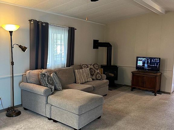Almost everything is new in this newer manufactured home. New flooring, upgraded bathrooms, new light fixtures, new refrigerator, waterheater. new enclosed patio/deck at the front door with security screen door. The gas fireplace in the livingroom provides some warm relaxing ambiance. A nice yard for gardening and a shed with an entrance from the carport on the front and from the yard in the back. Close to the clubhouse for social fun. They have a great assortment of books to borrow so you can sit in your warm patio or next to the gas stove and read the day away.