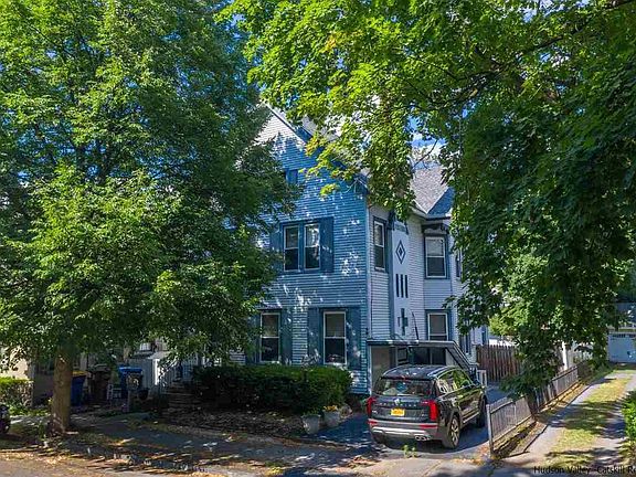 MOTIVATED OWNER. REDUCED !! This Uptown Kingston Classic Home is located on one of the most sought after streets in the City because of it's proximity to the Historic Stockade area along with it's setting among other unique homes with a rich history and abundance of charm and character. You are totally walk able to restaurants, shops, the farmer's market and the bus station running back and forth to NYC all day long. This home has a spacious layout with high ceilings and large rooms although it maintains a traditional feel as well. The entry is accented by a gorgeous original staircase. You have a formal living room with a brick fireplace, a formal dining room with plenty of room for guests and an additional den/family room with a built in bench that runs along the back windows. The kitchen has the original pine cabinets and a back staircase leading up to the second floor. There is a renovated full bath between the kitchen and den. A back door off of the kitchen exits out onto beautiful bluestone steps to an open porch and a private fully fenced area with a pool and seating area. Great for entertaining! The second story of this home includes a large bedroom with tin ceilings and a built in window seat, a renovated full bath with a heated towel bar, 2 more bedrooms and a laundry room with the back staircase taking you right down to the kitchen. The walk up attic really shows you the original beauty of this home with a ceiling height right up to the roof and the original windows. There is so much potential there. In keeping with the history of this home there is a separate access apartment with it's own entrance accented in blue stone which would also make a great home office, guest apartment or airbnb. There is some TLC needed here and there in this home, but it is well worth it for the price.