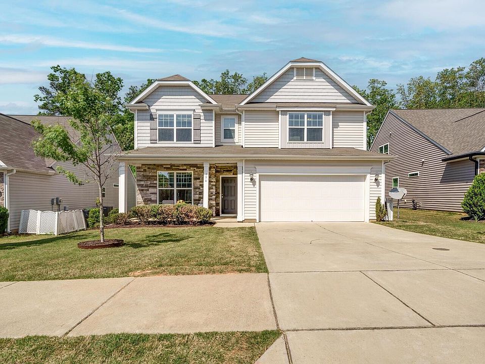 This beautiful and spacious home located desirable Flowers plantation has room for everyone! There are five bedrooms, including one on the main floor and an oversized primary suite on the second floor.The large loft space can be used as an additional relation area or as a play area. The office on the first floor provides the perfect workspace for those that work from home and the formal dining area is perfect for hosting extravagant dinner parties or more intimate meals.The spacious family room with gas log fireplace opens to the kitchen complete with large center kitchen island, making it easy to entertain guests while preparing meals. The screened porch provides a lovely outdoor space while enjoying the private back yard with wooded tree line. This home truly has something for everyone!