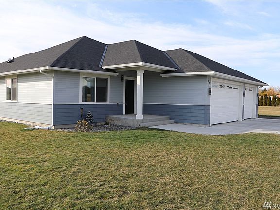 Immaculate one level home on 1/2 acre + lot. Three car garage provides ample space for multiple vehicles, recreational vehicles or just extra space for workshop or storage. The property is level and has plenty of room for additional out buildings if desired. The interior of this home will not disappoint, Hardwood floors in common areas, carpet in living room and bedrooms, granite counter tops in kitchen, walk in closet and bath in main bedroom. Beautiful sunset views from the covered patio and mountain views from the living/dining/ and kitchen.