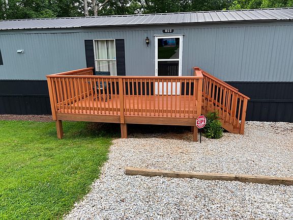 Spacious Mobile home located at the end of the road for added privacy. Level yard with a shed for additional storage. Appliances are approximately 3 years old , metal roof was done in 2017, heat pump installed in 2020, and connected to the city water system. Both decks have been replaced and re-stained. Tax value is for the land only as the mobile home has a title and personal property taxes.