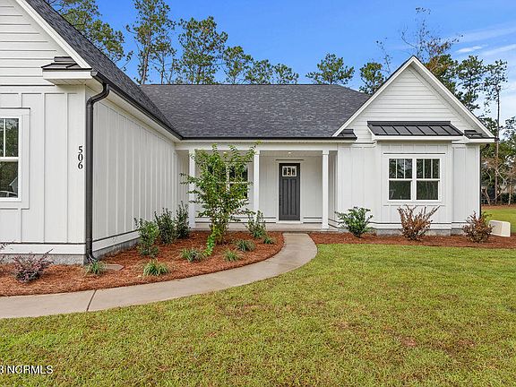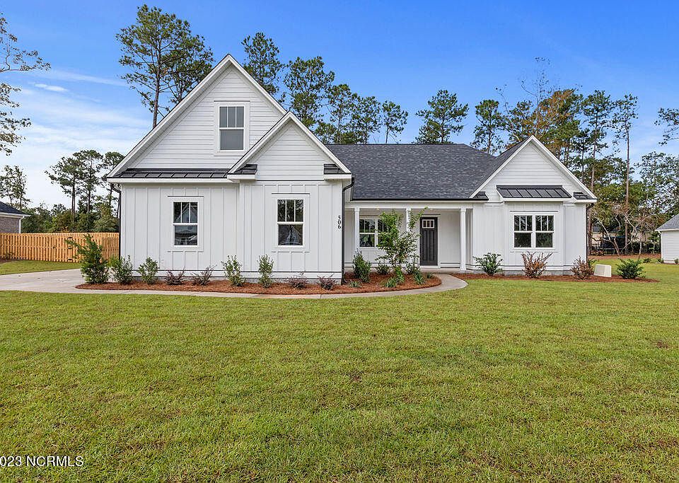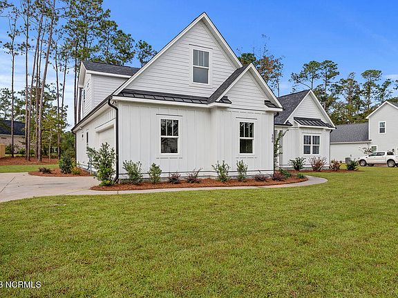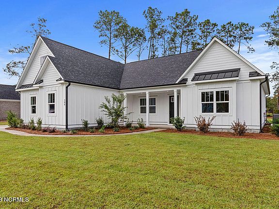 Welcome to the custom home community of Crown Pointe featuring water access on Virginia Creek. The Crystal floor plan sits on .61 acres and features 2678 heated sq ft 4 bedrooms, 3 full bathrooms, one level floor plan w/ bonus room including private full bathroom and 4th bedroom upstairs. This open floor plan features a Great Room with a gas fireplace framed with built-ins and shiplap to the ceiling over the fireplace. Kitchen features quartz counters, large island w/ farm sink, tile backsplash, stainless steel appliance package with gas cooktop wall mounted oven and built in microwave. The cabinets feature soft close doors & drawers plus under cabinet lighting. Right off the Kitchen is the Breakfast Nook with 6 windows for tons of natural light. Primary bedroom on the first floor features a full tile shower with rain head, his & hers vanities and walk in his & her closets. Two additional Guest bedrooms down stairs with a shared full bath. Laundry room/mud room as you enter through the side load two car garage. Upstairs is a bonus room, full bathroom and 4th bedroom. Covered front porch, screened-in back porch, additional concrete pad for grilling, sod & irrigation on front, sides & back yard w/ a separate well just for irrigation. Located only 7 minutes from Topsail Island and Surf City Beaches. Crown Pointe includes double sidewalks, pool & clubhouse plus dock, gazebo and day-dock for boating. No cookie cutter details in this custom waterfront community! This new phase will sell out quickly with all new Farmhouse designs & large wooded home sites. **This home is under construction now, photos of a similar build, this home will have White windows. ** Easy to show, be careful while onsite.