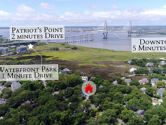 Rare opportunity to live in one of Mt. Pleasant's most exclusive neighborhoods w/views of the Ravenel Bridge! This secluded 4 bedroom home has everything you need and is just a short walk or bike ride to Waterfront Park & Whole Foods. This home boasts an open floor plan, office & formal dining on the 1st floor, an oversized master suite w/vaulted ceiling, luxurious bath & spacious WIC. You'll find heart pine floors & plantation shutters throughout. The 4th bedroom has it's own private bath and is currently used as a bonus room. You'll love the outdoor living space including a screened porch, a deck, hardscape patio & lush vegetation. Modern updates throughout. Enjoy relaxing at the neighborhood pool & cabana right around the corner. Whole home generator included & outdoor shwr! Other features of the home include abundant storage throughout & high, smooth ceilings. The Landscaping has been newly updated and includes an irrigation system. Gas Log Fireplace and gas Stove, Eat-In Kitchen with center kitchen island. Generous 2-car Garage, Laundry Room conveniently located between the garage and kitchen & the outdoor shower is perfect for when you come home from the beach! Bike or walk to Shem Creek, Trader Joe's & movies- best location in Mt. Pleasant! Fish or crab from the neighborhood bridge & enjoy views of the Ravenel Bridge throughout the neighborhood!