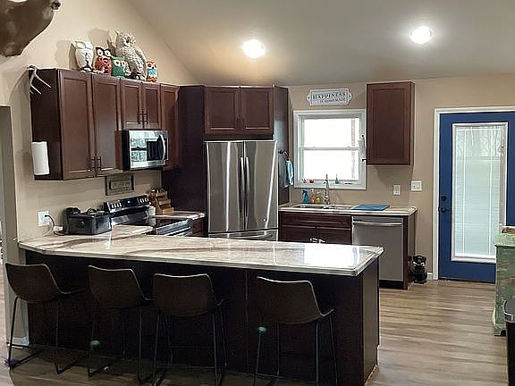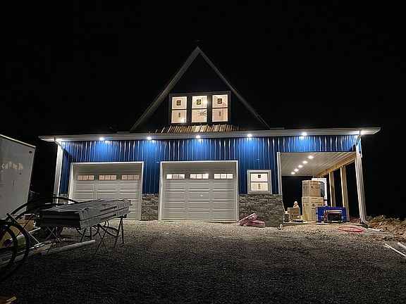 The house is insulated with spray foam and has four mini split AC heads with two outside units. The house has radiant heat in the floor that is connected to an outdoor wood burning furnace. The garage has its own mini split AC head and a forced-air ceiling mounted heater. The ceiling is vaulted in the main living/kitchen area, owners bedroom, owners bathroom, and the owners walk-in closet. All the cabinets throughout the house are made of stained maple with custom epoxy countertops. All the lights throughout the house are LED. The appliances are included with the purchase of the house. They are all electric Samsung brand. There is even a secret library that is only accessible by going through the owners walk-in closet. The house has instant hot water and two electric 40 gallon hot water tanks. The house is equipped with its own rainwater cistern. Rainwater is collected by the gutters and stored in two 5000 gallon water tanks located in its own outbuilding which also has radiant heat. The water is filtered through a 3 stage filtering system before being pumped into the house. The storage tanks also have an overflow to prevent flooding in the outbuilding. The water lines running to and from the outbuilding to the house is buried underground next to the radiant heat to prevent freezing. Front concrete porch is 12 feet by 32 feet Covered balcony is 12 feet by 20 feet