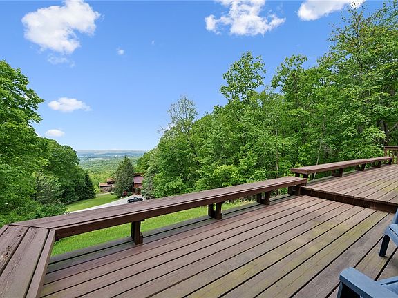 Step into your dream home & be instantly captivated by breathtaking views visible the moment you walk through the front door. This spacious 3 to 4 bedroom, 3 bath home is situated to take advantage of its scenic surroundings, with large rear-facing windows & doors that open onto an expansive deck—ideal for entertaining or relaxing on the deck with one heck of a view! The main level boasts a large kitchen that’s a cook’s dream with abundant cupboard & counter space, 2 ovens & 2 dishwashers—perfect for hosting. A dining room sits just off the kitchen. The living room features a stunning floor-to-ceiling stone propane fireplace, creating a warm atmosphere. A versatile bonus room on the main floor can be used as a home office or bedroom. A full bathroom completes the main level. Upstairs, you’ll find three bedrooms & 2 additional full bathrooms, including a primary suite with a walk-in closet & laundry space. 2 of the bedrooms offer access to a private upper deck—perfect for sunsets!