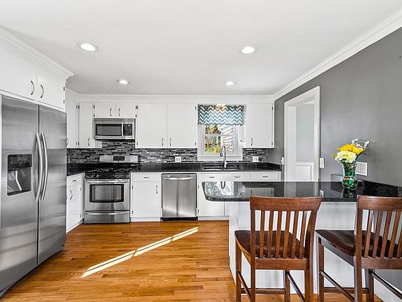INTERIOR BEAUTIFUL!! MUST SEE to view this lovely, updated 3 bedrooms, 2 full bath home with quality workmanship throughout. Gorgeous crown molding, wainscot & built-in's adorn this wonderful home on large, corner lot in great neighborhood! Updated kitchen with eat-in dinette area including peninsula/breakfast nook, stainless steel appliances, tiled backsplash & recessed lighting. Lots of sunlight through living room windows with surround sound. 1st & 2 floor full baths been beautifully updated. Close your eyes, relax & soak in whirlpool/jacuzzi tub with recessed lighting above. Both full baths have much sought after radiant floored heating to keep you warm. This home also has a convenient 1st floor laundry room, newer central air conditioning system & new wood deck. Spacious 2 car garage with loft area above & attached side storage shed. This is a super area of town near Swansea Village with High School, Jr. High & Elementary Schools right down the road!! Highway access close by!
