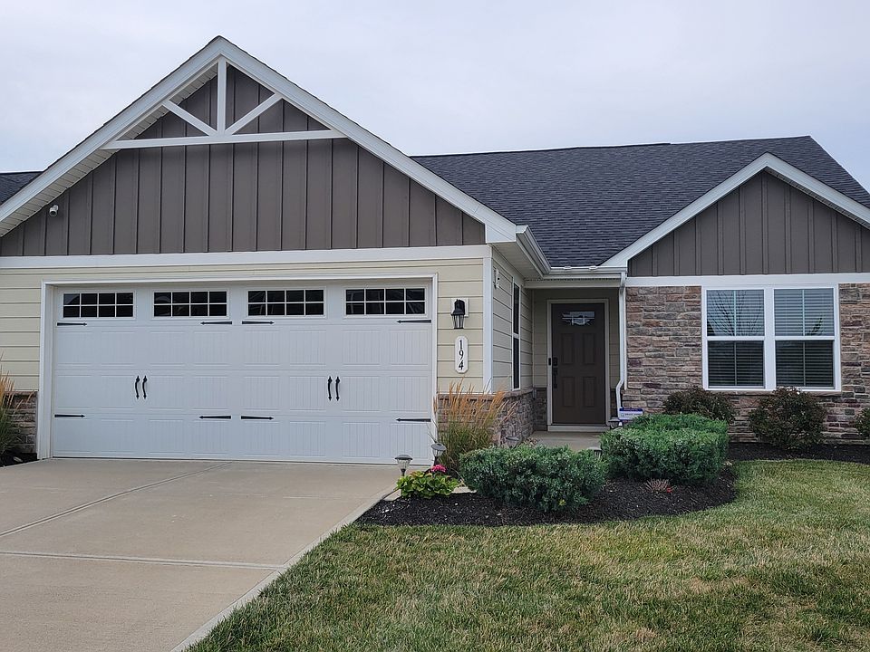 Why wait to build in popular Briar Creek Villas when this low-maintenance ranch is move-in ready with loads of upgrades! This 3 BR/2BA villa offers an open concept great room, breakfast room, & kitchen w/large center island, stainless steel appliances, timeless white cabinetry, quartz countertops, pantry, and R/O water filtration! Brushed nickel hardware, faucets, & light fixtures throughout. The MBR/BA is spacious w/walk-in closet, double sinks & full tiled shower w/ bench. Other upgrades include a SafeStep Hybrid Tub/Shower Combo, whole house surge protector, humidifier, electronic dust filter, water softener, lawn irrigation system, security system w/ cameras and video doorbell. The 2-car attached garage has a beautiful epoxy floor coating and offers extra storage space, and garage door opener. This home is handicapped accessible with raised outlets, lower light switches, & 36" doors. Snow removal and lawncare are included in the monthly HOA dues.