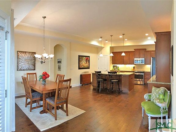 This is the one! Open Palazzo plan with wine bar complete with wine cooler & glass cabinetry. Gourmet kitchen with lg center island, granite tops, ss apps & loads of beautiful maple cabinetry! Lg master suite with granite tops, double sinks, Roman Shower, HUGE master closet & double sliding doors. screened porch, lg paver patio & fenced private ctyd! 2 bdrms/2 bths plus flex room/study/sunroom all on main. One level living at it's maintenance free. No common walls & no flood insurance! Close to shops & new Publix! Amazing amenities at SQ & convenient to downtown Savannah.