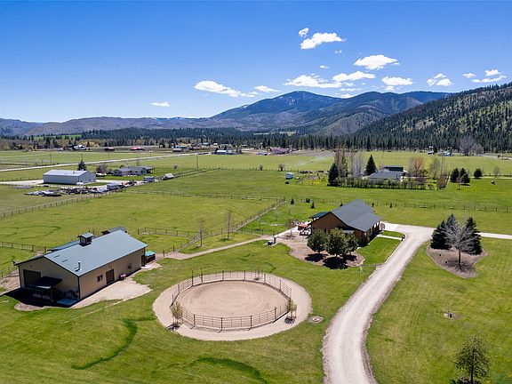 Additional outbuildings include a loafing shed and a chicken coop. This prime location has great access to National Forest land and Blue Ribbon West Fork Bitterroot River fishing are only minutes away. Mature trees, fenced back yard with a fire-pit with great sunrises, a the perfect morning setting.