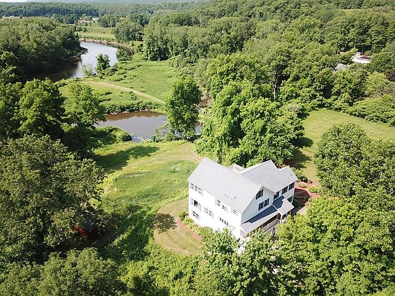 This is a rare opportunity: beautiful home on 20 acres with stunning views of the Deerfield River! Not only can you see the river from almost every window and 3 levels of decking, you have access to swimming, tubing and kayaking along the 1/2 mile of river frontage. Also included: fishing pond, your very own island and large shed in which to store all your boats, floats & ATV. The 3 story home has been lovingly cared for and updated over the past 11 years. The 1st floor's open kitchen/dining/living area boasts hardwood, granite and travertine tile floors and a chef's kitchen. Upstairs, a spa like master suite, plus 3 bedrooms with 3 full baths equals comfortable living quarters for all. The partially finished basement is plumbed for another kitchen and bath and would make a perfect guest or au pair suite. Live in the middle of a Pioneer Valley sanctuary with all the nearby convenience and culture of living in a city! UMASS, DA, Eaglebrook and I-91 access are just minutes away.