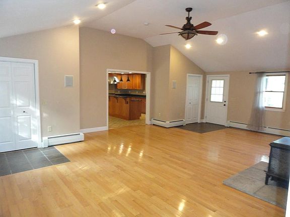 Additional approved house lot included with this Open sprawling 4 bedroom ranch, on 6.87 acres, offering lg spacious family rm with hardwood flooring, cathedral ceiling and wood stove. This is open to the newly renovated kitchen with cherry cabinets, granite counters, center island with seating. The kitchen extends into the dining area with add'l cabinets, wet bar, wine cooler and access to your deck in the back. The FB has been renovated. Master bedroom has a double closet, ceiling fan, hardwood floors and access to a rm which could be converted to a walk in closet or possibly even a master FB. Your front entry is accented by a farmers porch with rod iron railing. In the back you have a lg deck with access from your family room and dining room. For the car enthusiast or hobbyist is the 35ft x 23ft radiant floor heated garage which boasts 11ft ceilings and 9ft doors! Roof, windows, siding, trim done +/- 2007. Basement is lg and framed to be finished with plumbing for a full bath.